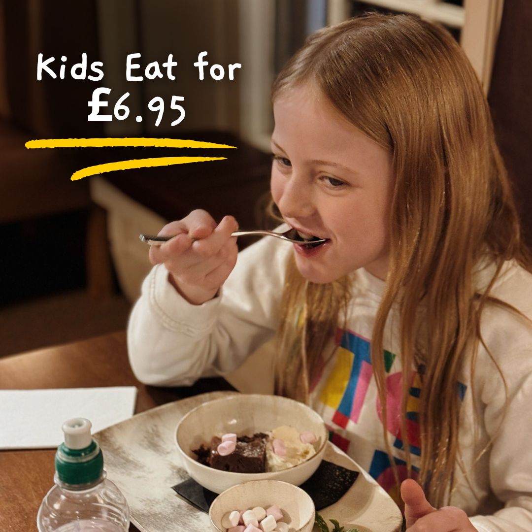 Kids enjoy 2 courses for only £6.95 with an adult main course